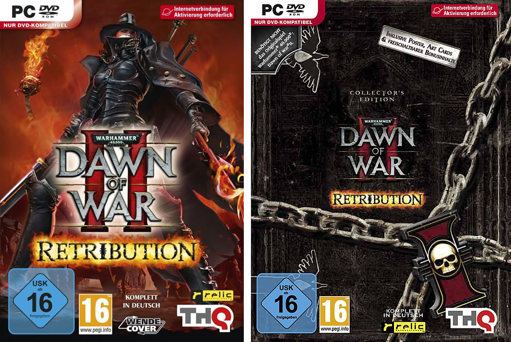 THQ kündigte mehrere Special Editions zu Warhammer 40.000: Dawn of War II - Retribution an, die zeitgleich mit der Veröffentlichung des Echtzeit-Strategiespiels erhältlich sein werden. Neben der Collector's Edition werden ab sofort auch sechs verschiedene Streitkräfte-Pakete im Rahmen einer Vorbestellaktion angeboten.