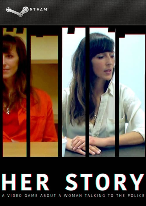 Im interaktiven Detektivspiel Her Story versucht der Spieler als Ermittler durch die Analyse unzähliger Realfilm-Videoschnipsel aus einem Verhör einen Mord aufzuklären. Dazu müssen in einer Datenbank Suchwörter eingegeben werden, die neue Videoschnipsel zu Tage fördern, in denen sich neue Hinweise auf den Fall und neue Suchwörter verbergen.