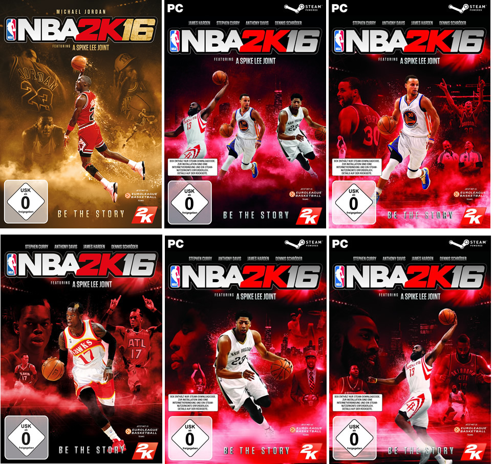 NBA 2K16 definiert das Zusammenspiel von Sport und Popkultur mit drei einzigartigen Spielcovern mit den NBA All-Stars Stephen Curry, James Harden und Anthony Davis sowie dem neuen Meine KARRIERE-Modus aus der Feder und unter der Regie des angesehenen Filmemachers Spike Lee völlig neu. Die Cover werden zufällig verteilt, aber alle Fans können ganz beruhigt sein, da jede Verpackung einen Einleger aller drei Motive der Coverathleten enthält, so dass jeder sein Wunschmotiv benutzen kann.